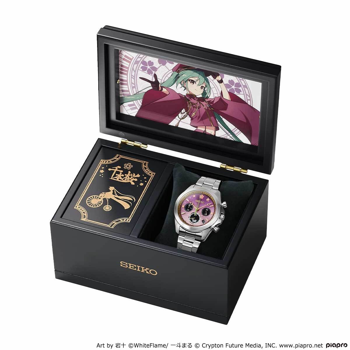 初音ミク『千本桜』の世界観を表現したセイコーコラボの腕時計が登場! 格調高い黒塗りのオルゴールボックス付き