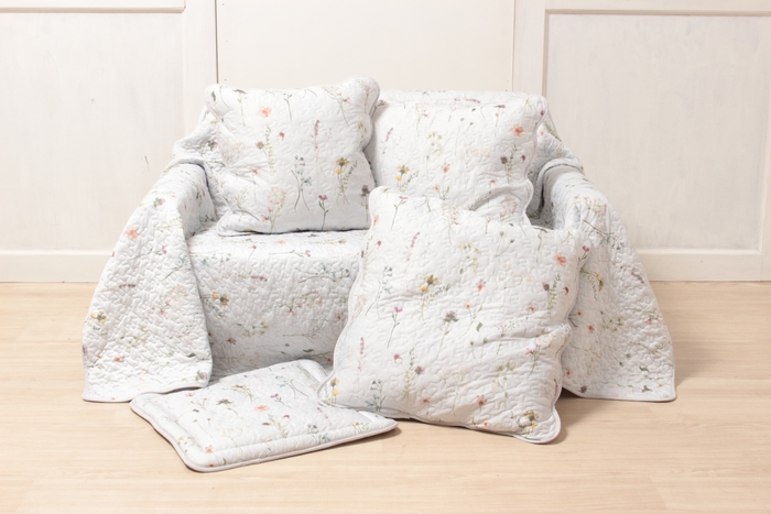 このコレクションは、ベッドリネンとしてだけでなく、ソファカバーとしても最適です。軽量なキルト素材で作られており、家具を美しく保護しながら、お部屋の雰囲気を爽やかに演出します。