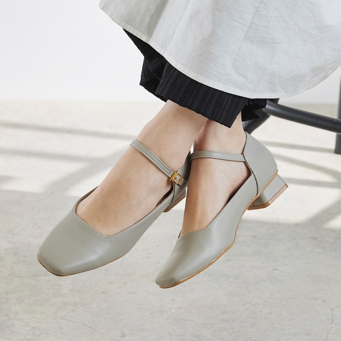 スクエアトゥや台形ヒールなどのトレンドデザインをバランス良く組みこんだ、選びやすい1足。ストラップがしっかりと足を支えるので、歩きやすさも◎