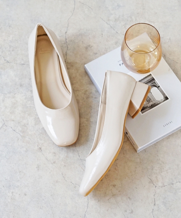 商品名 : menue (メヌエ) スクエアトゥ台形ヒールパンプス