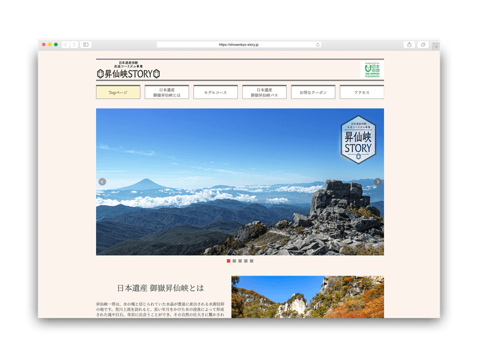 公式サイト「昇仙峡STORY」を開設し、日本遺産構成文化財の情報や、モデルコースを掲載