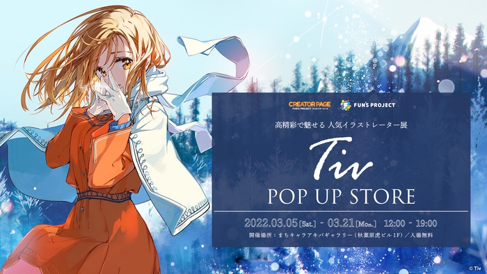 大日本印刷株式会社(DNP)の運営するクリエイター共創サービス【FUN'S PROJECT】(https://funs-project.com )は、クリエイターの活躍を支援するため、オンデマンド商品の販売とクリエイターページの運営をしています。このたび、クリエイターページに参加しているTiv先生の高精彩グッズを展示する「高精彩で魅せる人気イラストレーター展 -Tiv POPUP STORE-」を開催します。