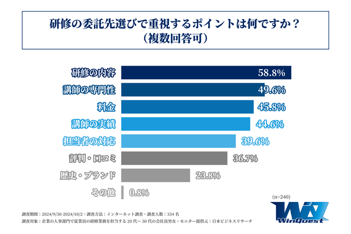 この調査から、企業研修会社の選び方の実態が明らかになりました。