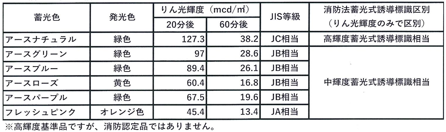 JIS等級りん光輝度と消防法区分