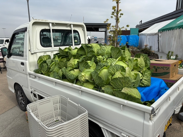 今回はキャベツ(千葉県産)の軽トラ市を開催!軽トラいっぱいに積み上げられたキャベツは迫力満点!!無くなり次第の特価イベントです!!お買い求めの際はお早めに!!