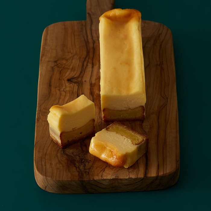 アーモンドとバターをたっぷりと使用したしっとり生地と一緒に食べることで、アーモンドの香ばしさとバターの深みが、テリーヌのような濃厚なチーズケーキと絡まり、まさにプレミアムな美味しさ。