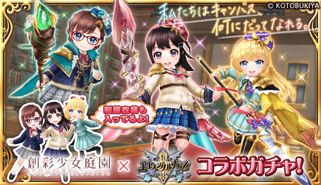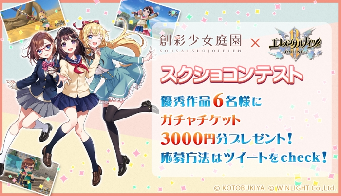 株式会社ウインライトは、MMORPG『エレメンタルナイツR』にて、6月24日(木)メンテナンス後より、株式会社壽屋の"創る" "彩る"をテーマにした女の子プラモデルシリーズ『創彩少女庭園』とのコラボイベントを開始いたしました。
