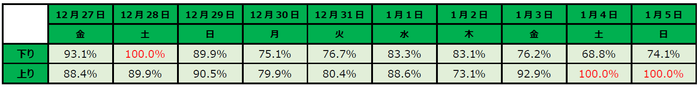 ※下り・上りそれぞれ、一番高い搭乗率を赤で表記しています。