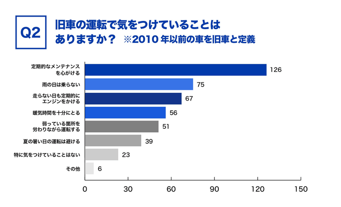 Q2.旧車の運転で気をつけていることはありますか?※2010年以前の車を旧車と定義