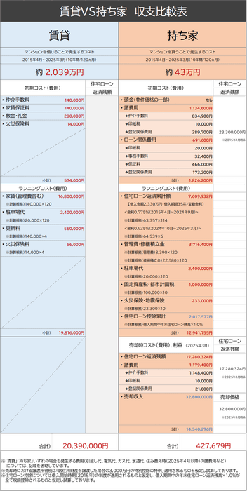 次頁の「賃貸VS持ち家 収支比較表」をご覧ください。