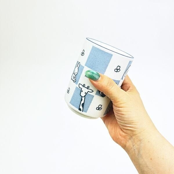 どうぶつとミッフィーがイラストされた湯呑もおすすめです。今時なかわいさのくすみブルーで、ギフトにもよさそうです。わんちゃん、ぶたさん、きりんさん、、、