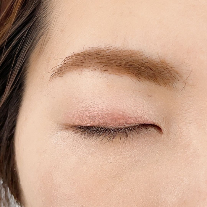 ハイライトのミルキーピンクはアイホール全体や下まぶたにのせるとくすみを飛ばし、明るい印象の目元に。シャドーカラーのダスティピンクは塗るだけでぐっと洗練された女性らしさを醸し出します。