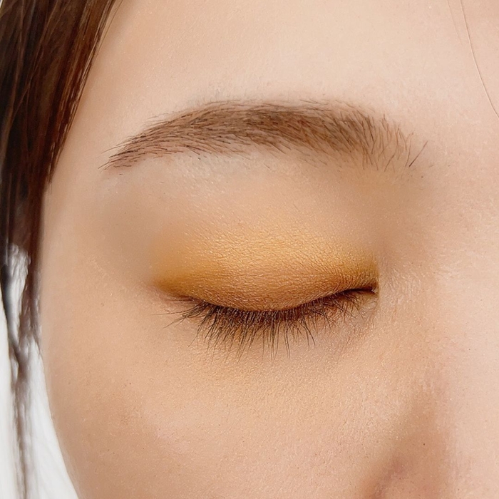 まろやかな透明感を宿す優しげなイエローに、赤味ブラウンで柔らかくもしっかりと目元を引き締め、印象的なまなざしを演出。