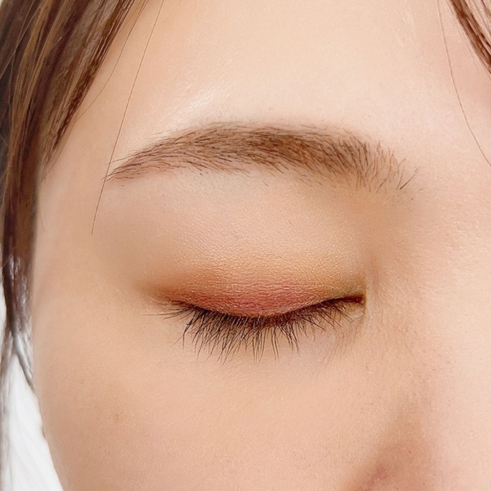 上品にきらめくシャンパンゴールドと目元を明るく見せるカッパーオレンジのコンビは2ステップでトレンド顔に仕上がります。