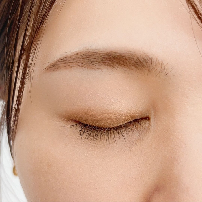 目元に深みと明るさをプラスするキャラメルのような軽やかなブラウンに、ひと塗りでおしゃれ顔に仕立てるボルドーの組み合わせ。
