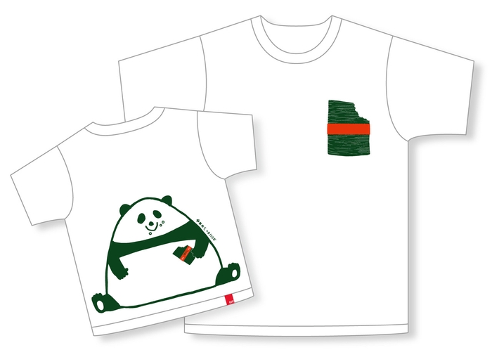 フロントの左胸には、あれ、一口かじられた笹寿し・・?かじった犯人は、なんと背中に・・食いしん坊のパンダさん!