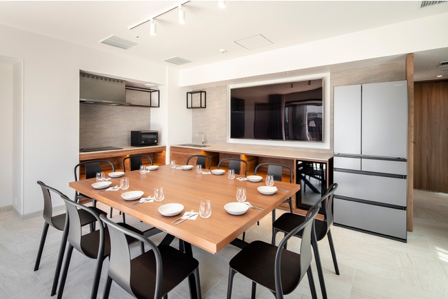 新宿を一望できる最上階は、テラス部分も含めて140㎡程の開放的な空間です。使用できる空間にはシステムキッチン付きのダイニングスペースや、スポーツ観戦・映画鑑賞に適した大画面85インチ液晶TVやポータブルBluetoothスピーカー等の設備をご用意。また、フードデリバリー事業を展開するスターフェスティバル株式会社(本社:東京都港区、代表取締役 CEO:岸⽥ 祐介)と提携しBBQイベントの提供が可能で、飲み放題プランもお付けできます。(提供具体例・・・BBQセット貸し出し・食材ケータリング・焼き係シェフの派遣・アルコール類の提供・お弁当・パーティー用軽食・フルーツ類の提供等)