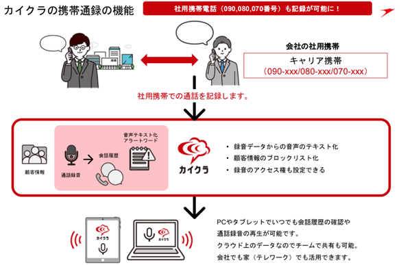 今回の導入は、これまで同社で使用されていた固定電話と連携するCTIシステムによる録音・顧客管理に加え、近年増加している携帯電話での通話についても録音が可能となり、顧客満足度(CS)の更なる向上と営業現場における顧客対応の更なる向上を目指します。