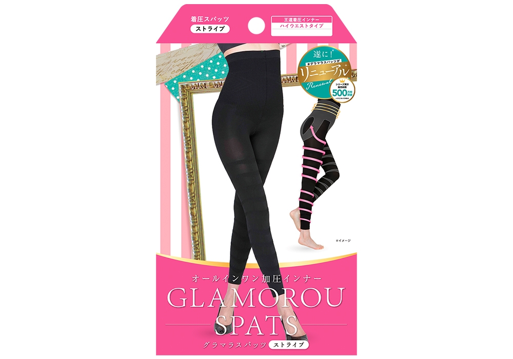 『グラマラスパッツ』は、ウエストから足首まで美しいボディラインをサポートするオールインワン加圧インナーの着圧スパッツで、2018年の発売以来ご好評をいただいている、当社の主力商品です。