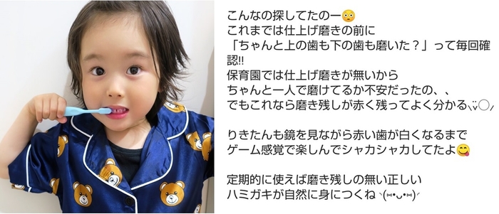 3名のママが、歯垢が赤く染まる液体ハミガキ『こどもハミガキ上手』をお試し!「こんなの探してたの!」「ゲーム感覚で楽しんでた」といった、ポジティブなコメントが寄せられました。以下に、ママたちの投稿の一部を引用し、ご紹介していきます!