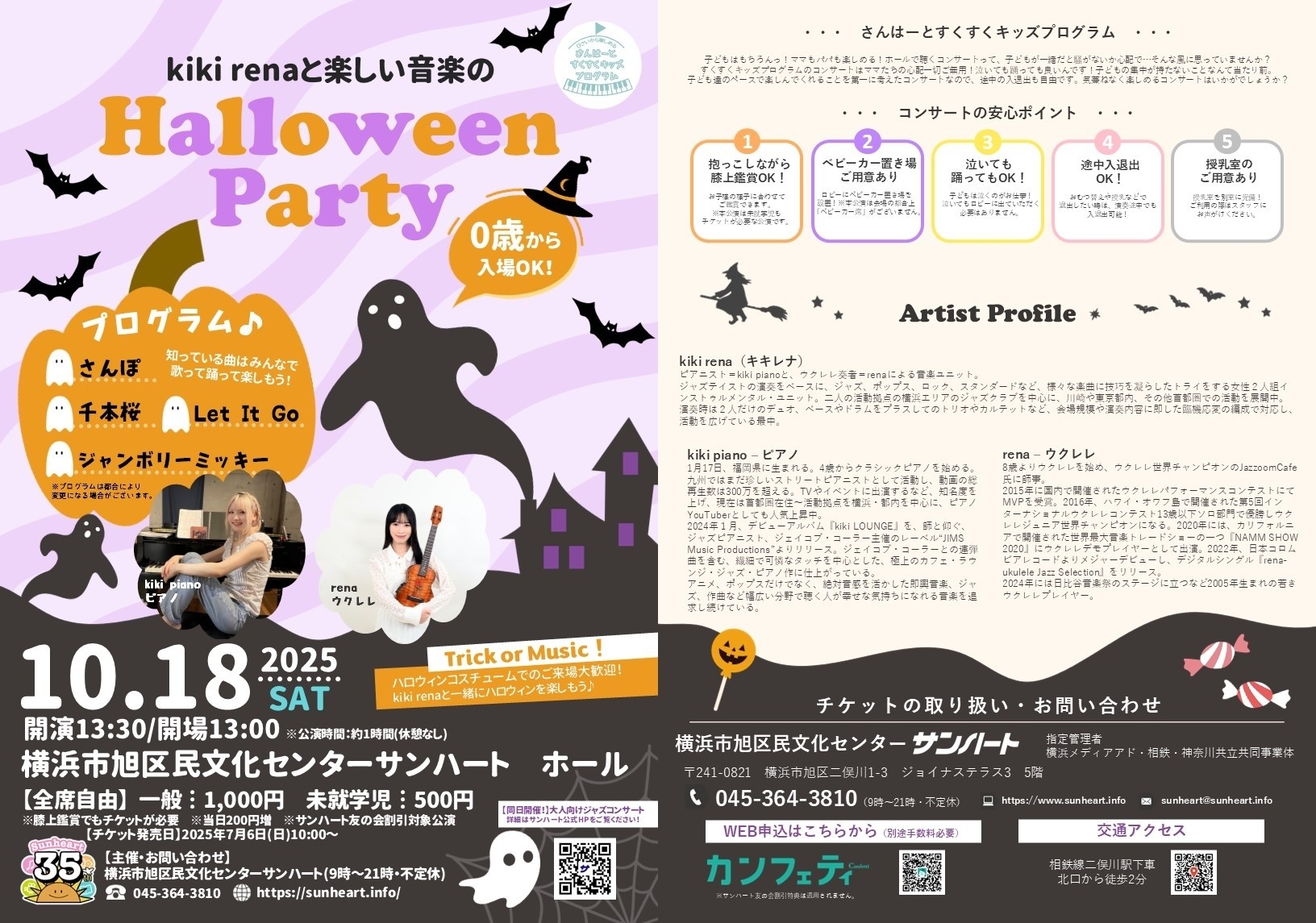『kiki renaと楽しい音楽のHalloween Party』が2025年10月18日 (土)に横浜市旭区民文化センター サンハート ホール(神奈川県 横浜市旭区 二俣川 1-3 ジョイナステラス3(旧・二俣川ライフ)5F)にて開催されます。