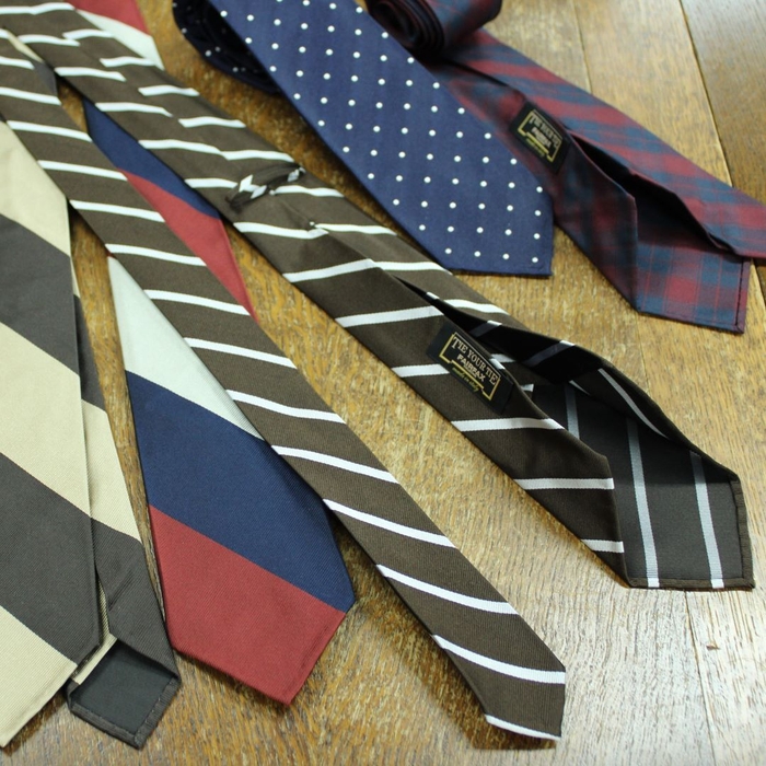 ネクタイのデザインは、フェアファクスを象徴するレジメンタルからチェック・ドットといったまさにアメリカントラディショナルのスタイリングに欠かせないデザイン。