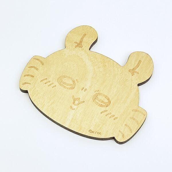 ちいかわのフェイス型の木製のコースターは、木のあたたかみとちいかわの笑顔のダブルで癒しをお届けします。