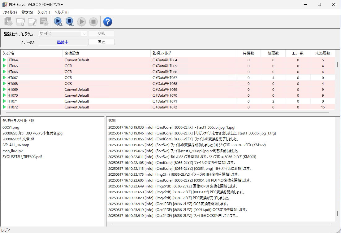 ・フォルダ監視機能ではファイルを共有フォルダに保存してサーバー側で自動でPDFへ変換できます。