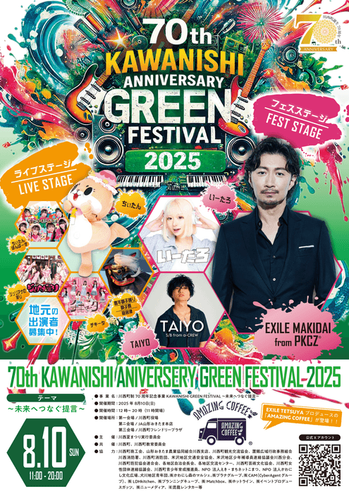 川西町制70周年記念事業 KAWANISHI GREENFESTIVAL 2025 ~未来へつなぐ提言~ BUZZPRODUCTION〈バズプロダクション〉所属 TAIYO S/B from a-CREW 出演決定!