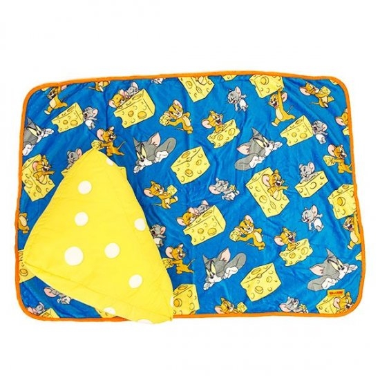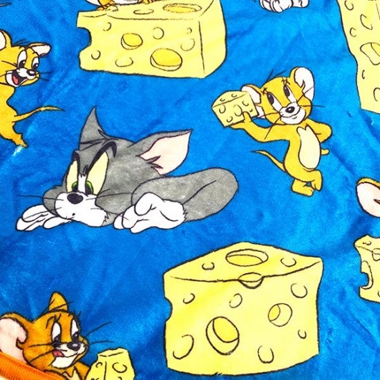 ブランケットにはチーズを持って嬉しそうなジェリーや、ジェリーを狙うトムがデザインされています。ペロリと舌を出してチーズを見つめるジェリーもキュート♡背景色がブルーなのも海外アニメっぽくて良いですよね♪
