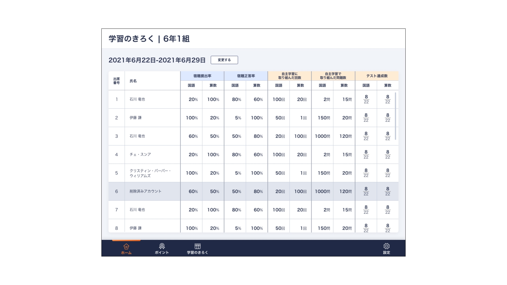 「自主学習」においても児童の取り組み状況を把握できるようになりました。個別の学習進度や理解度を把握する材料としての活用も可能です。