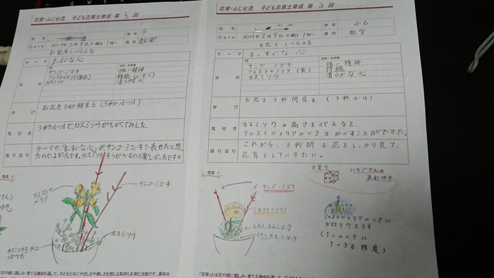 すぐに、ネットで調べて、山口みどり先生の、オフィスメントアー認定「花育ライフインストラクター講座」を受講し、2012年以降花育活動を取り入れています。