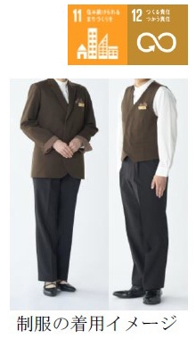 アテンダントの制服は、プライベースの上質感にマッチするデザインとしており、ジャケットとベストには環境にやさしい素材を使用しています。