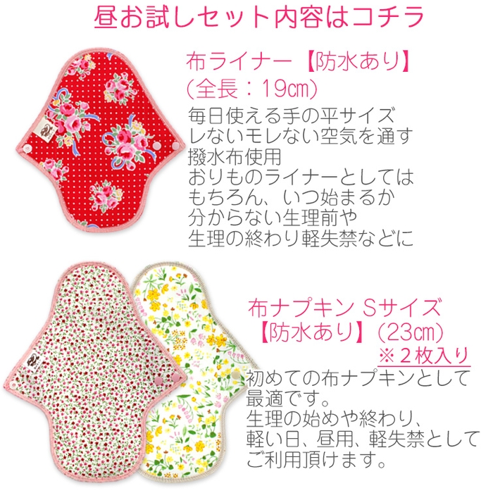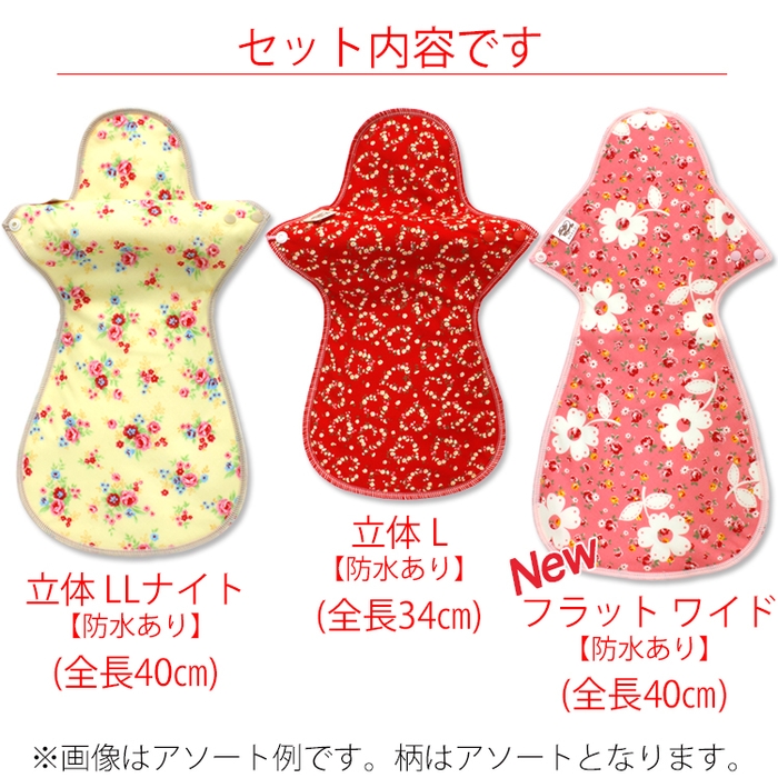 使い捨て布ナプキンから夜用の立体型布ナプキンまで、様々な用途の商品が入っています♪