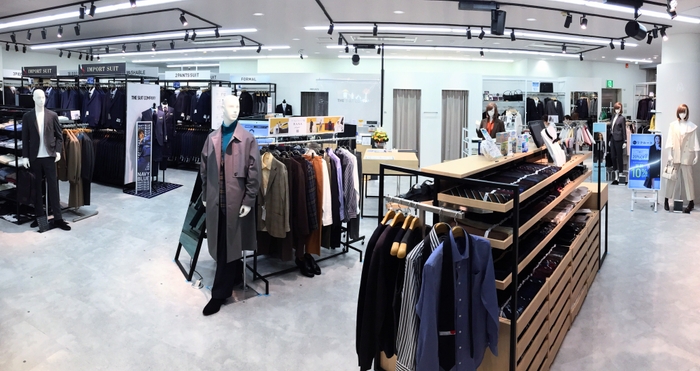 今回の新コンセプト形態「SUIT SQUARE」は、近年の働き方やライフスタイルの変化によるビジネスウェアの多様化に対応するため、「ザ・スーツカンパニー」業態が展開する4つのブランドを1店舗に集約する他、店舗ごとで地域特性に合わせたサービスを提供するウィジェット型の店舗です。この大宮西口店では、多くのビジネスパーソンが利用するターミナル駅に隣接することから、店内に初めてWi-Fi環境を整えた無料のワークスペースを設けました。