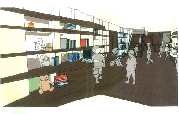 敷地面積1,488㎡ 延床面積827㎡という広々のした施設で、吹き抜けの開放感がある体育館。国内外の様々な本・ボルダリング・こだわりの玩具など、子ども達の興味・関心を広げる仕掛けを数多く取り入れています。