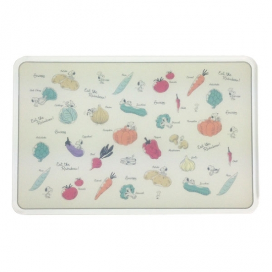 表面は通常のまな板のよう。ですが、デザインは一枚下の層にプリントしてあるために、スヌーピー自体はきれいなままです。
