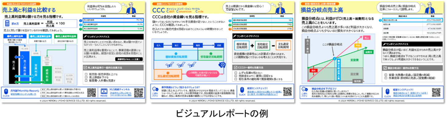 会計事務所による顧問先の経営指導を、自動生成されるビジュアルレポートでサポート