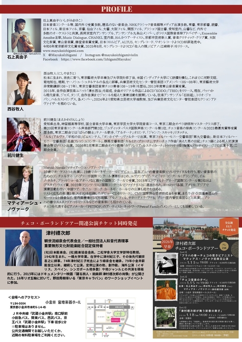 一般社団法人和音主催、津村禮次郎 チェコ・ポーランドツアー プレ企画【Vol.2】『チェコ音楽の夕べ』が2026年1月15日(木)に小金井 宮地楽器ホール(大ホール)(東京都小金井市本町6-14-45)にて上演されます。