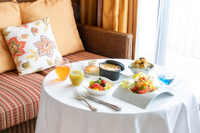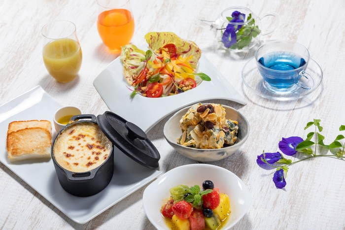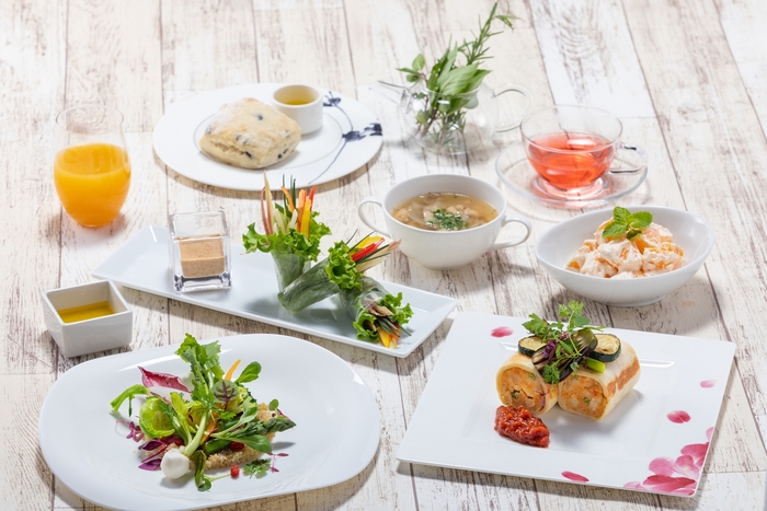 お食事は、沖縄の太陽の恵みを受けてすこやかに育った地元産の野菜や果物、旬の素材を中心に、管理栄養士監修による「デトックス&腸活」「身体も喜ぶ‟口福“」をテーマに、総料理長が腕を振るいご用意したこのプランだけの特別メニュー。