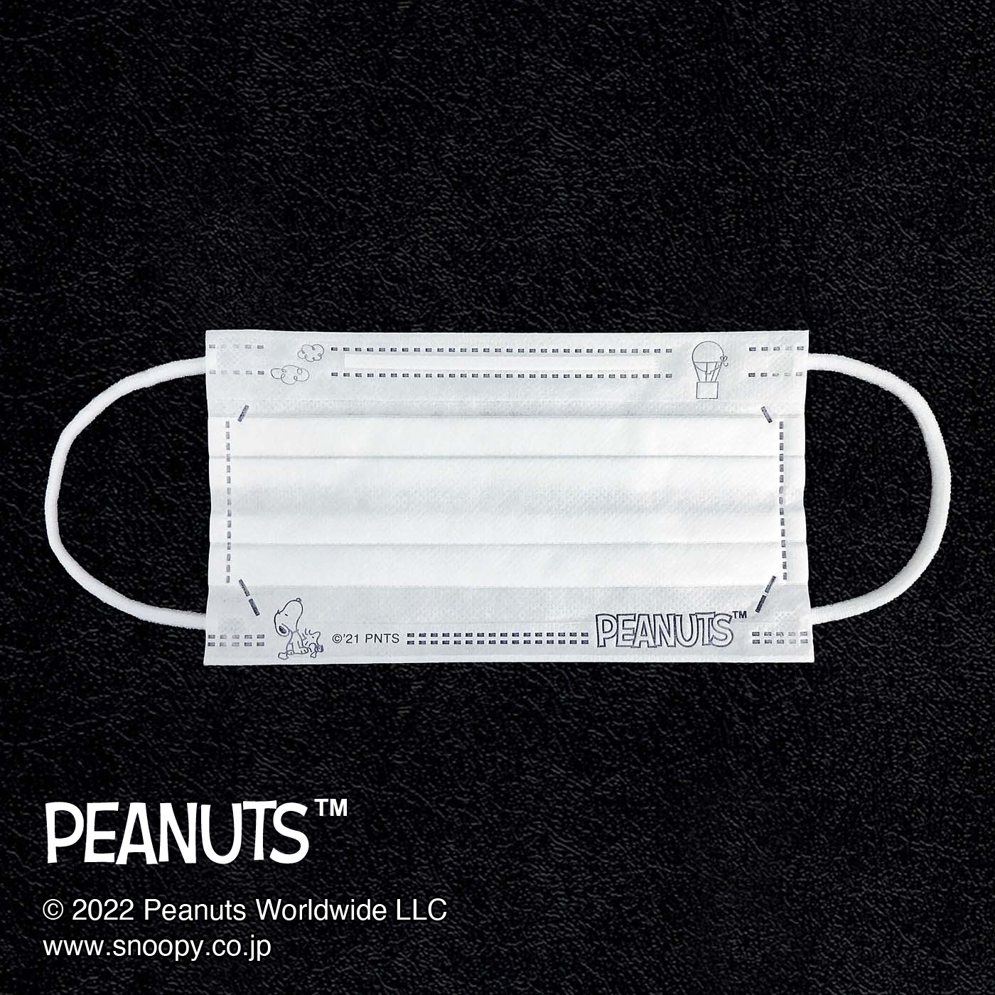少し小さめのマスクには、スヌーピーがさりげなくついており、街中や職場などシーンを選ばずに身に着けられます。マスクは一枚ずつ個別包装になっており、持ち運びに困りません。