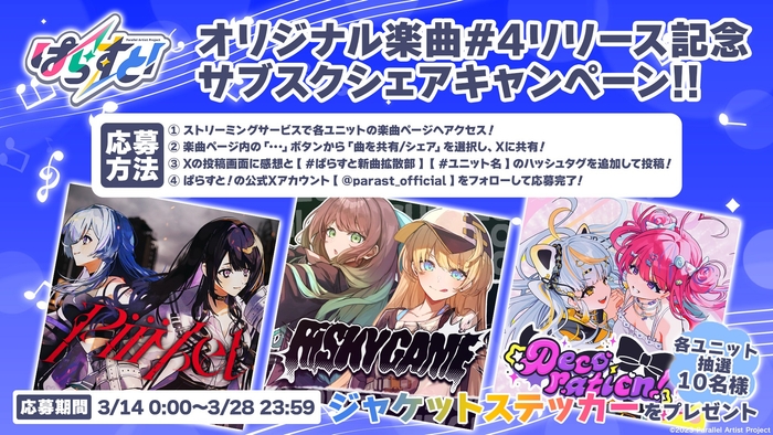 VTuberプロジェクト「ぱらすと!」オリジナル楽曲第4弾が3/14に3曲同時サブスク解禁!!「丸山漠(a crowd of rebellion)」「廣中トキワ」「市瀬るぽ、Nor」が楽曲提供 | NEWSCAST