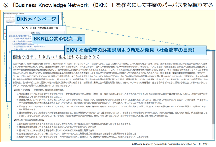本支援システムにより、『社会変革型ソリューション』を、単発の思いつきではなく、様々な視点からの解決策を複合させ重層的な筋書きとして構想し、企業が社会に対して、また、働く個々の人たちに向けて、あるべきと考える未来社会像やパーパス(生きていく目的、存在意義)を発信できるものにしていくことができるようになります。