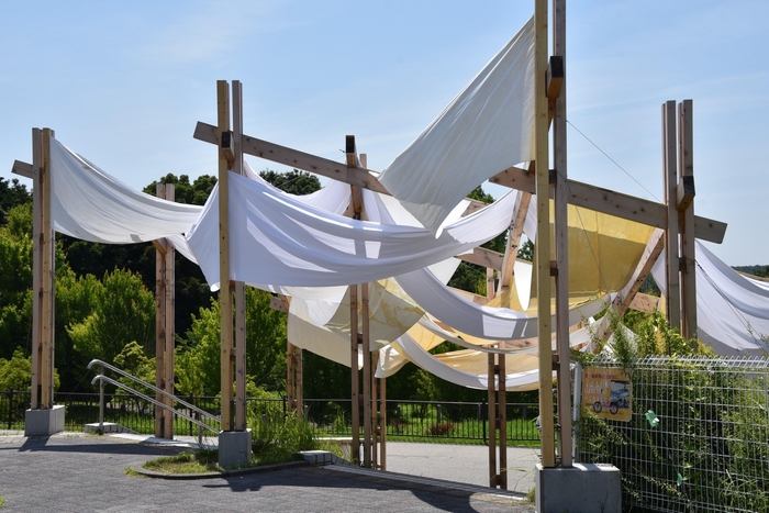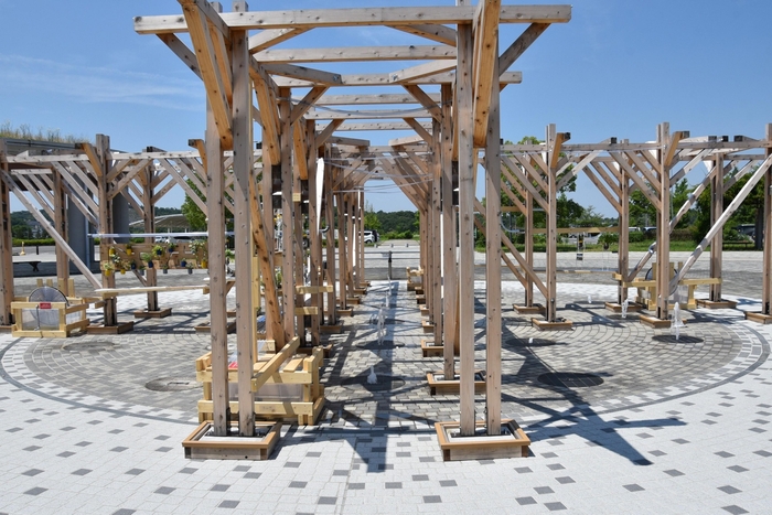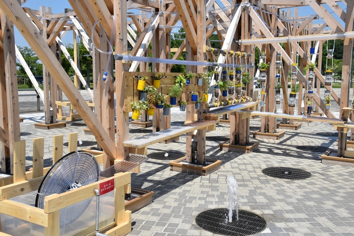 2005年の「愛・地球博」(愛知万博)開催から20周年を記念した愛知県主催の「愛・地球博20祭」の一環として、会場となった愛知県長久手市の「愛・地球博記念公園」を県内の大学生たちが特別感あふれる空間に演出するイベント「彩(いろどり)の回廊」で、本学理工学部建築学科の生田京子教授と谷田真准教授、佐藤布武准教授の研究室の作品が7月20日(日)まで展示されています。