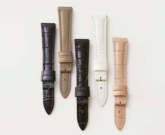 フェスタではクラシック カレ レディース時計をお買い上げのお客様へ替えレザーストラップ(ピンバックル付)5色からお好きな色を1本プレゼントいたします。ワンタッチで簡単に付け替えが可能なので、装いに合わせたスタイリングをお楽しみいただけます。