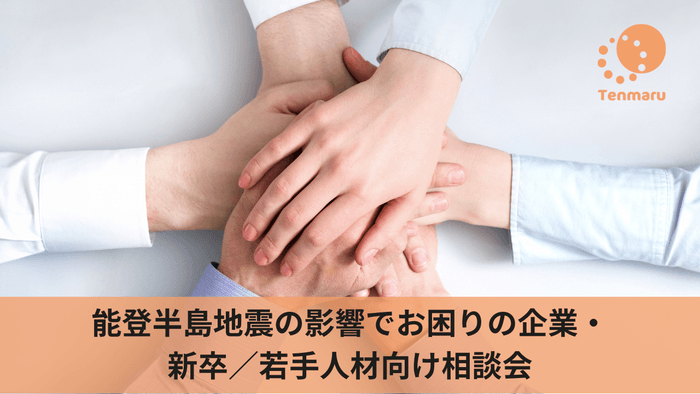 組織づくりや人材教育・キャリア開発、人材採用支援を行う株式会社Tenmaru(本社:東京都港区、代表取締役:諸戸 歩)は、令和6年能登半島地震で被災あるいは影響を受けた企業・学生および若手人材向けに相談会を開催します。内定者のフォローや受け入れに関する問題やキャリアへの不安を解消し、いち早く体制やキャリア構築の立て直しが図れるよう支援します。
