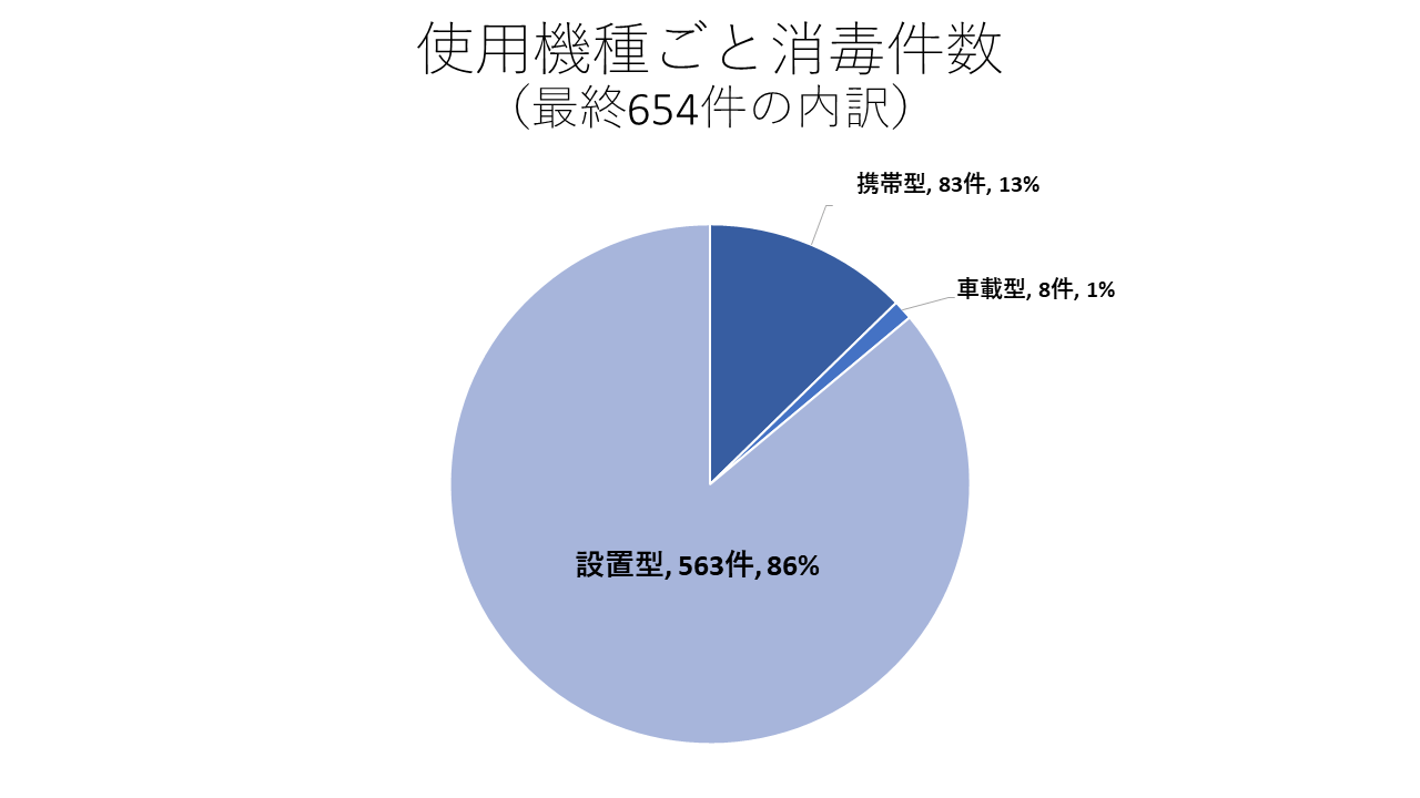 約3年間で依頼を受けた消毒件数は、654件でした。結果的には、2022年夏のオミクロン株からBA5への置き換え流行ピーク時に消毒件数が過去最多となりました。