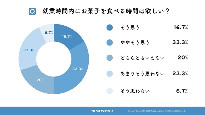- 就業時間内にお菓子を食べる時間がある人は約8割