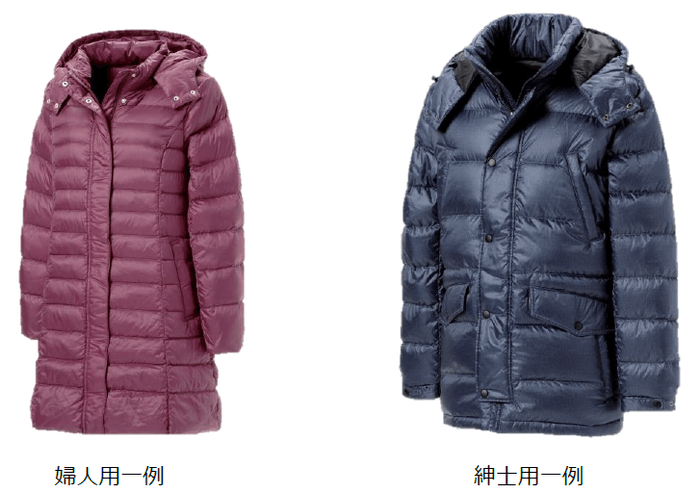 コートの他にダウンベスト(紳士・婦人 税抜2,990円)、ダウンジャケット(紳士・婦人 税抜3,990円)も販売中です。