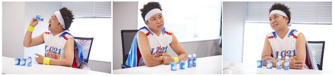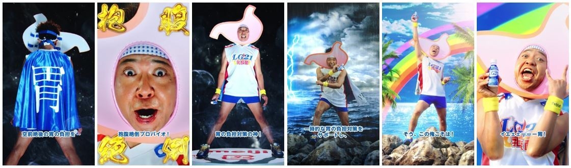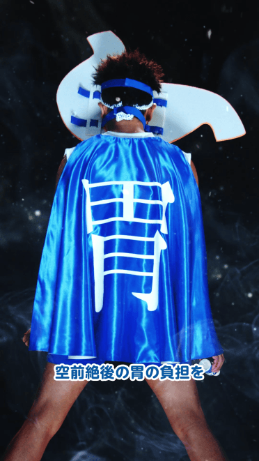 公式X上で、タレントはシークレットにして公開していた「胃にはLG21♪」のサウンドロゴ。歌っていたのはサンシャイン池崎さんでした。本動画には、胃の負担対策の神・イケザキLG21マンが登場。胃の形を模した被り物をつけ、“胃”の文字が背中にあしらわれたマントを羽織ったヒーローのような出で立ちで、LG21乳酸菌を“空前絶後の胃の負担をやわらげる乳酸菌”として紹介します。雷や荒波を吹き飛ばす演出と共に繰り出される、良い状態の胃を表現した「イエェェーーー胃!」という池崎さんの激しい叫びと、合間に入る「胃にはLG21♪」の穏やかな歌声がつらい胃の負担をやわらげるイメージで、LG21を体現しています。